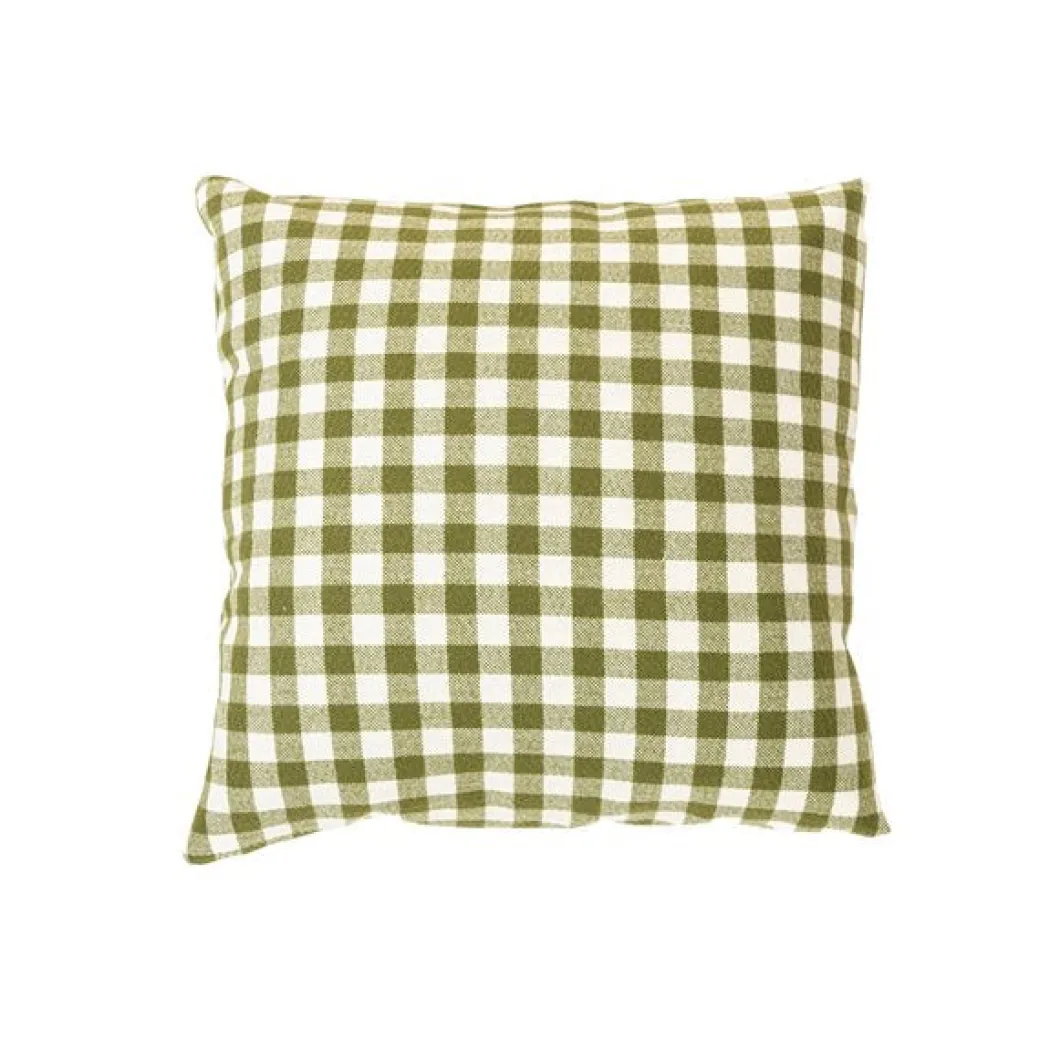 Coussin décoratif à carreaux vert et ivoire. – Arrivage prévu pour fin avril