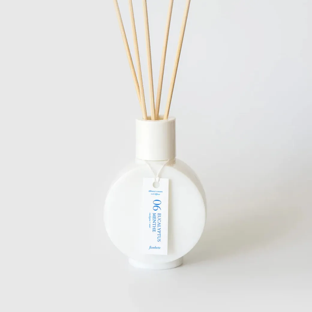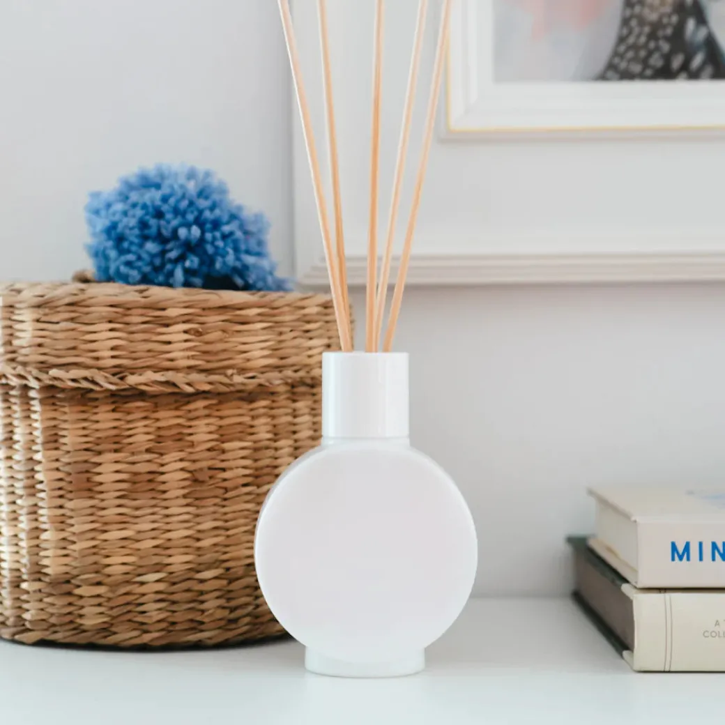 - Diffuseur en verre blanc de 4 oz et 5 roseaux inclus