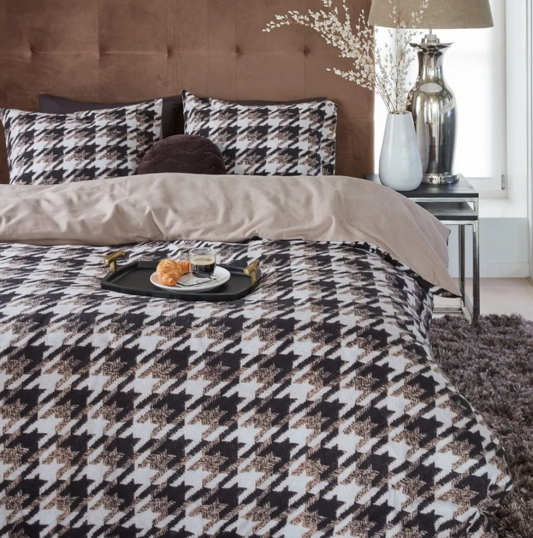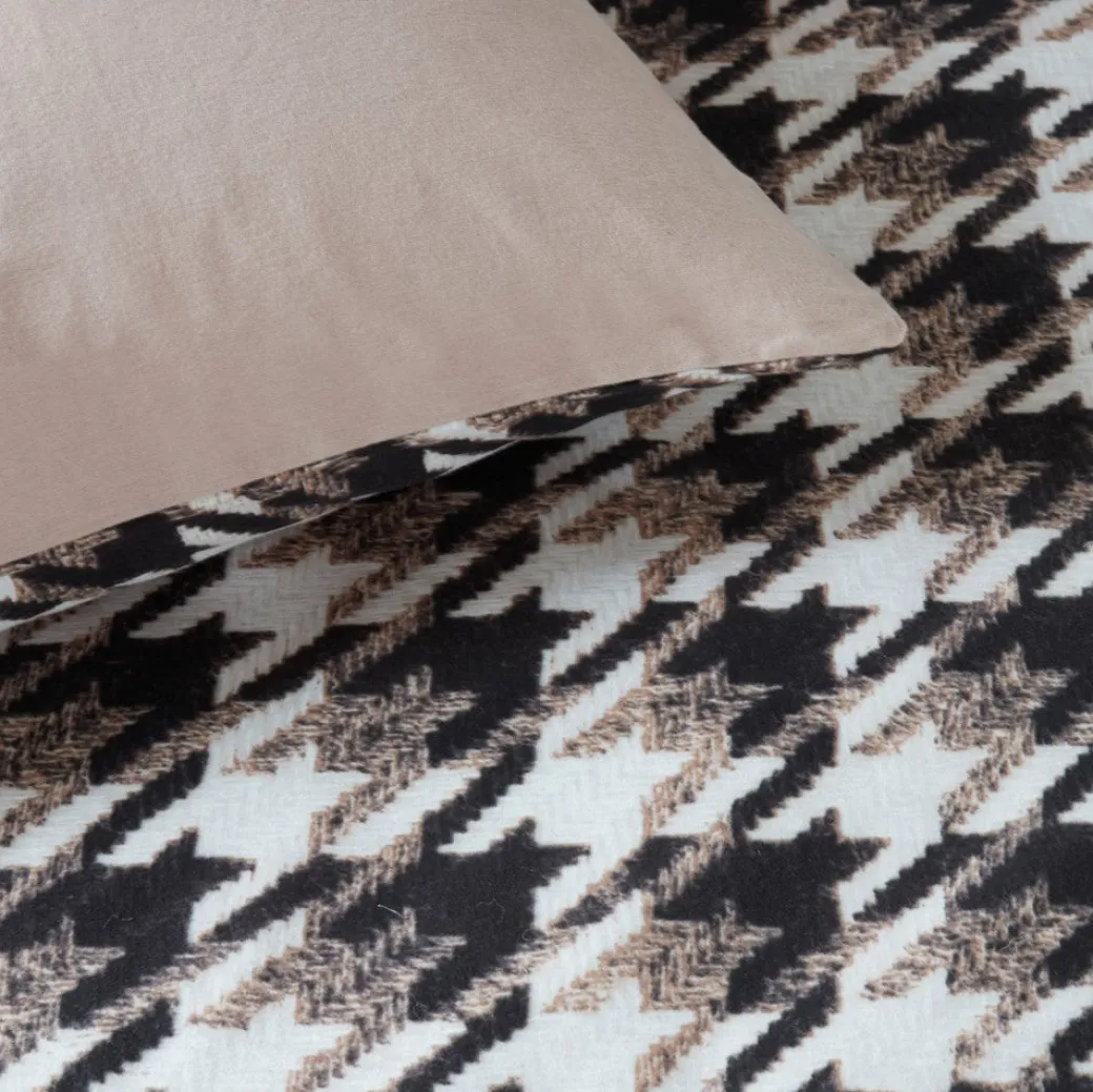 Ensemble de housse de couette à motif pied-de-poule dans les teintes de ivoire, sable et noir