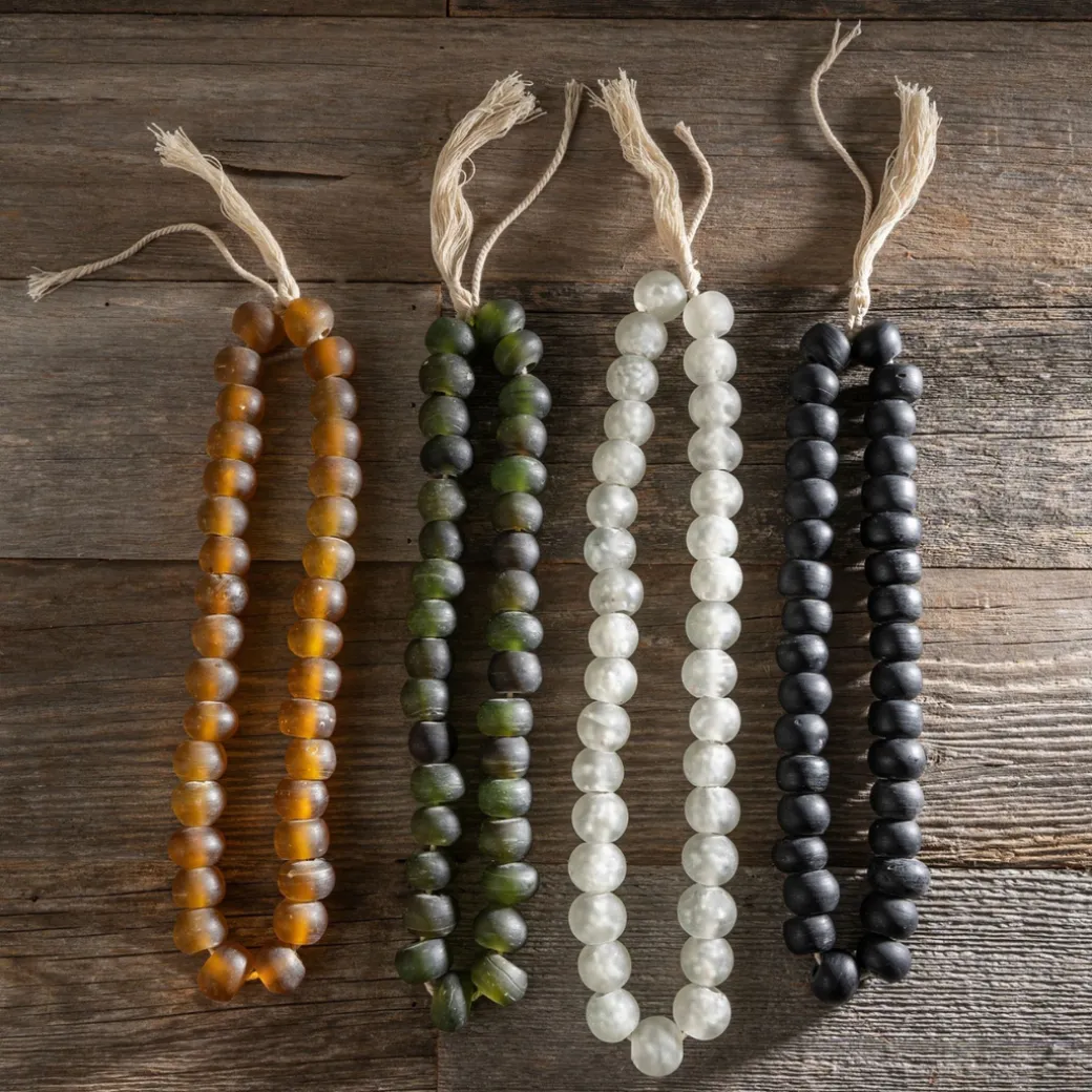 L’accent parfait sur une table basse, une pile de livres ou affiché à l’intérieur d’un bol, les perles en verre givré faites à la main indiennes sont lumineuses lorsqu’elles captent la lumière. Enfilés à la main sur un cordon en coton, ils sont une charmante touche finale.