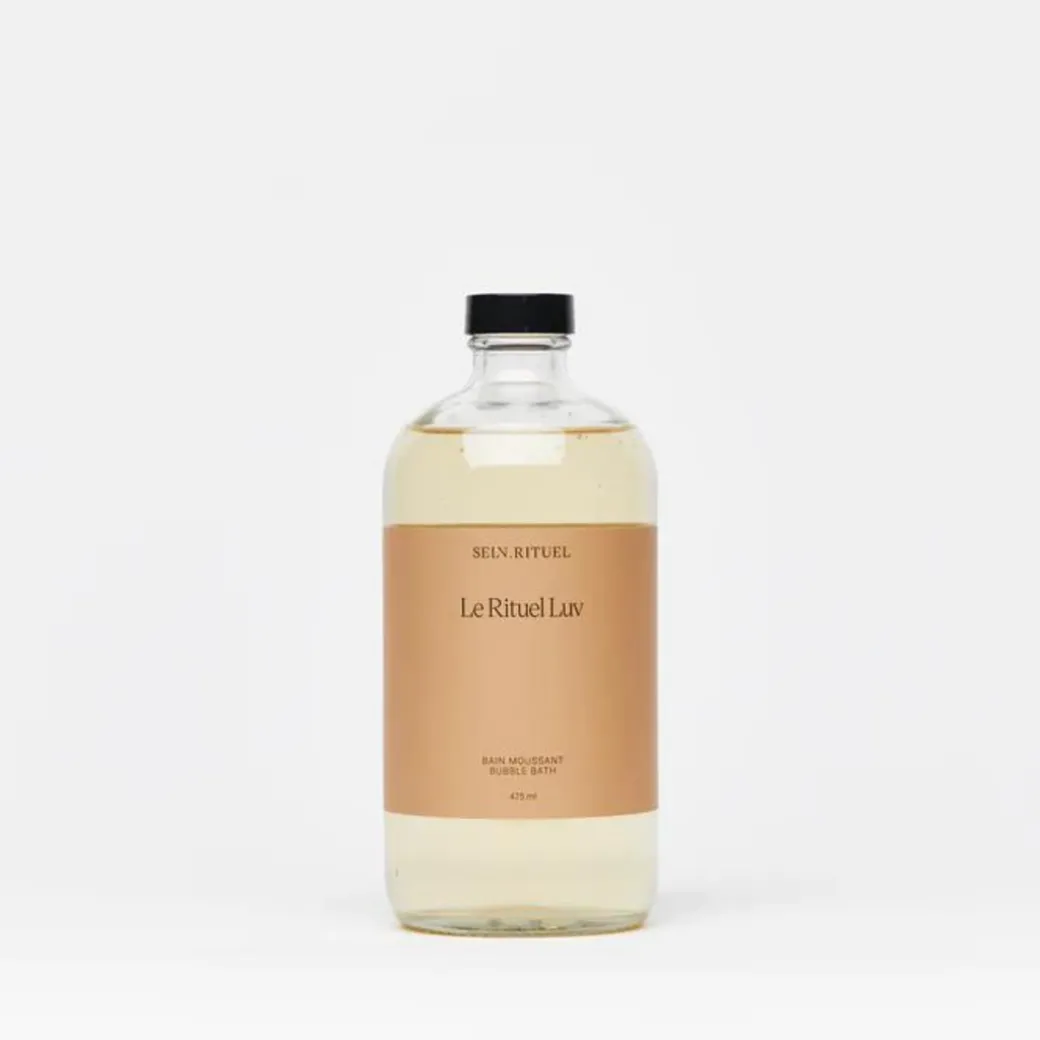 Mets environ quinze pompes directement dans l’eau chaude de ton bain pour avoir une belle mousse. Tu peux rajouter à ta guise notre Huile botanique bain et corps Rituel LUV.