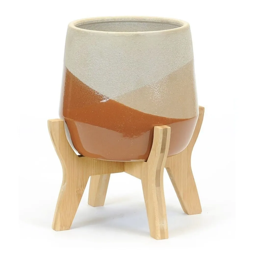 Cache-pot tricolor sur pieds en bois