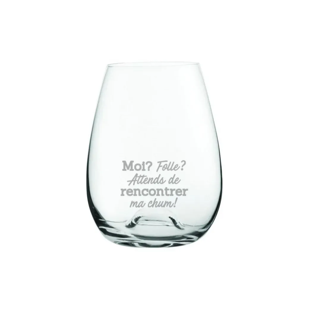 Gravure au laser avec inscription « Moi ? Folle ? Attends de rencontrer ma chum! »